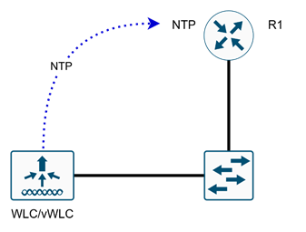 Обязательно нужно настроить на контроллере NTP, чтобы точки доступа смогли получить время от контроллера. Время контроллер будет получать от маршрутизатора R1. Если время не будет синхронизировано точки доступа не будут активированы контроллером!