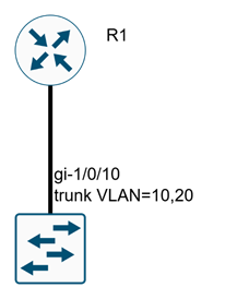 console(config)#interface GigabitEthernet 1/0/10 console(config-if)#description TO_ROUTER console(config-if)#switchport mode trunk console(config-if)#switchport trunk allowed vlan add 10,20 console(config-if)#switchport forbidden default-vlan console(config-if)#exit |